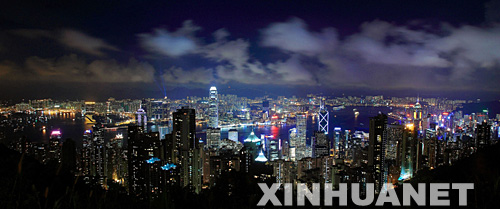 這是香港金鐘中信大廈的外墻展示的“慶祝回歸十周年”字句。香港的夜晚,既有燈火璀璨、繁華喧鬧的大都市風情,也有白云、山崗和溫暖的海風。中西方文化在這里交融,為這里帶來獨有的魅力。