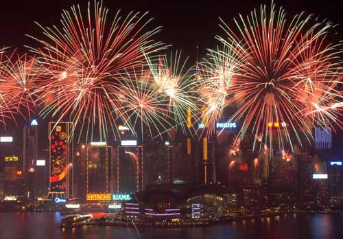香港維港上空的新春煙花。