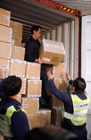 年1月1日,香港海關(guān)人員正在檢查“CEPA”實(shí)施后第一批進(jìn)出的貨物。備受海內(nèi)外關(guān)注的《內(nèi)地與香港關(guān)于建立更緊密經(jīng)貿(mào)關(guān)系的安排》(簡稱CEPA)2004年1月1日零時(shí)正式實(shí)施