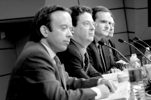 IMF研究室副主任柯林斯(左二)表示,中國(guó)在促進(jìn)經(jīng)濟(jì)再平衡方面的成績(jī)令人欣慰