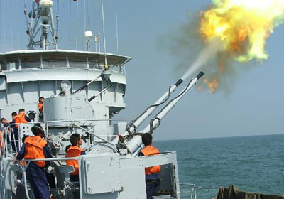 資料圖:東海艦隊艦艇對“敵”機進行空中打擊