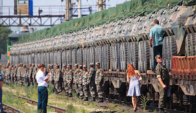 軍列駛入俄境,但不久又停了下來,俄邊檢人員以及全程隨車擔負安全警衛的官兵要對車上人員和裝備進行核查。中方翻譯官與俄方交涉說,軍列人員和裝備都是根據兩國有關部門多次協商后進行核載的,不會出現任何問題。俄方人員堅持要進行檢查,但保證會用最短時間完成。俄羅斯人所謂的“最短時間”讓參演官兵和記者在悶熱的列車上等了足足兩個多小時。