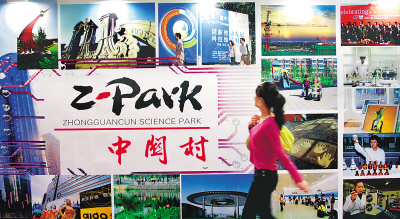 海歸為中關村地區經濟的發展作出了突出貢獻。圖為北京科博會上中關村科技園區展臺。羅偉 攝