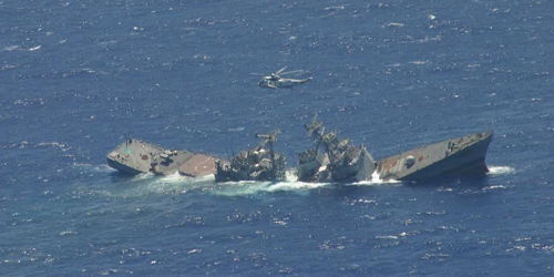 龍骨折斷,軍艦斷成兩截。該艦是臺灣基德級驅逐艦的姐妹型號。