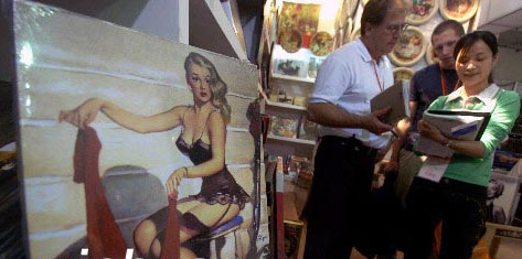 資料圖片:2006年10月27日,美國客商在廣交會流花展館的裝飾品展區選購裝飾畫。新華社記者 劉大偉 攝
