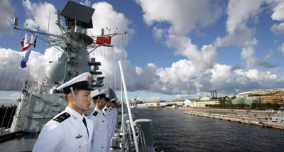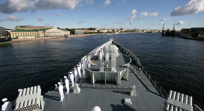 8月27日,中國海軍艦艇編隊抵達俄羅斯圣彼得堡市。 新華社記者查春明攝