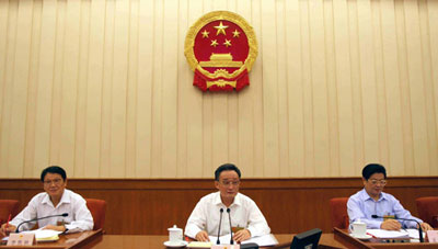 8月30日,十屆全國人大常委會第二十九次會議完成各項議程后在北京人民大會堂閉會。 吳邦國委員長主持會議并講話。 新華社記者 李濤攝
