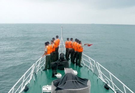 9月2日, 浙江海警一支隊官兵在海上進(jìn)行搜救工作。