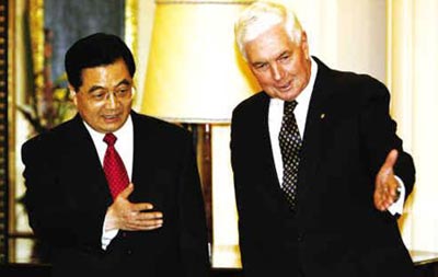 中國日報網環球在線消息:中國與澳大利亞4日簽署了數目龐大的資源協議,其中包括原料和能源項目,到訪的中國國家主席胡錦濤見證簽約儀式。