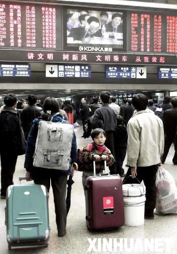 新中國歷史上第一個(gè)全國性的行政決策聽證會(huì)――鐵路價(jià)格聽證會(huì)在北京舉行,一些旅客在北京西客站通過大屏幕觀看聽證會(huì)電視現(xiàn)場直播(2002年1月12日攝)。