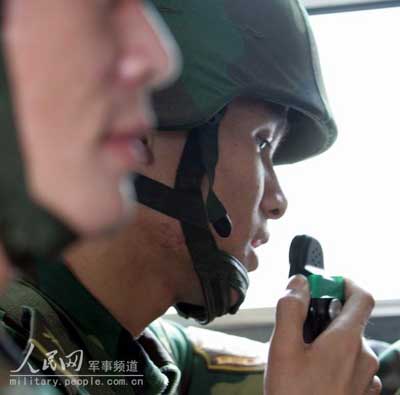 濟南軍區(qū)導(dǎo)調(diào)組在部隊摩托化開進中對參演部隊實施電子監(jiān)控。