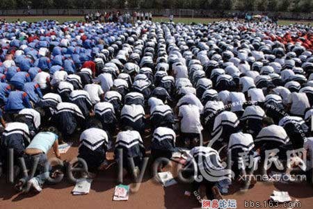 資料圖片:學英語的學生被號召向老師跪拜感恩