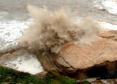 10月7日,臺風“羅莎”登陸時,浙江溫嶺市石塘鎮海面上巨浪翻滾。當日15時40分,福建省氣象臺發布臺風橙色預警信號稱,臺風“羅莎”于15時30分在閩浙交界的福鼎市沙埕鎮登陸。登陸后臺風繼續以每小時20公里左右的速度向北偏西方向移動,強度逐漸減弱。