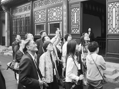 圖為海外統促會會長們到天津楊柳青參觀聞名遐邇的石家大院。