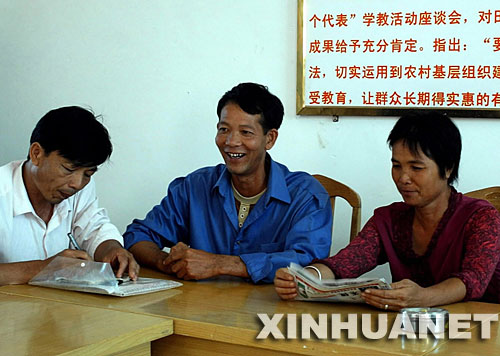 10月15日,廣西百色市田陽縣頭塘鎮(zhèn)群眾在就十七大有關話題進行討論。