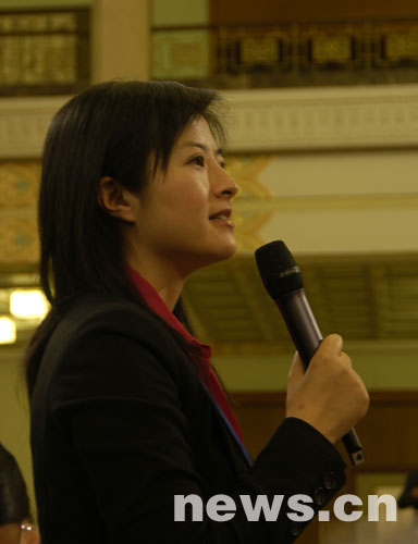 10月14日16:30,中國共產黨第十七次全國代表大會新聞發言人李東生在人民大會堂三樓金色大廳舉行首場新聞發布會。圖為中央電視臺記者正在提問。(新華網榮忠霞/攝)