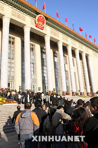 10月15日上午,中國(guó)共產(chǎn)黨第十七次全國(guó)代表大會(huì)將在北京人民大會(huì)堂隆重開幕。這是記者在北京人民大會(huì)堂前排隊(duì)等候入場(chǎng)。新華社記者 劉衛(wèi)兵 攝