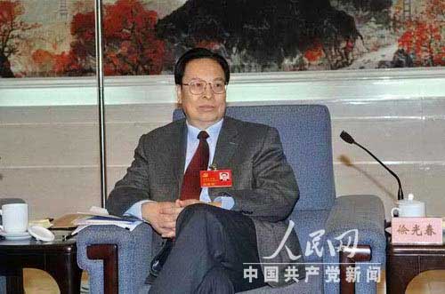 10月16日上午9時,河南代表團在人民大會堂河南廳向中外記者開放討論,圖為徐光春。(記者 于凱攝)