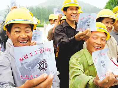 在濟南務工的5000名外地農民加入當地工會組織,興奮不已。