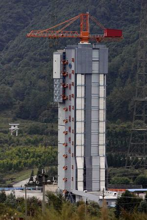 圖文:長三火箭已經固定在三號發射架中