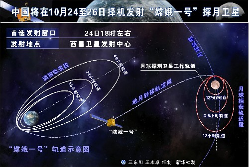 圖表:中國將在10月24至26日擇機發射“嫦娥一號”探月衛星 新華社發