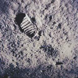 美國宇航員阿姆斯特朗乘坐阿波羅11號飛船登月成功,將人類的第一個足跡永遠地留在了那里。激動不已的阿姆斯特朗說:“對我一個人來說,這是一小步,而對整個人類而言卻是一個飛躍!”