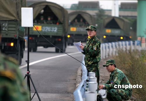 導演部利用演習評估系統評估遠程機動。10月28日,鐵拳-2007機步師實兵檢驗性演習部隊在機動途中展開防持久毒劑襲擊,化學偵察,道路消毒,裝備消毒,人員消毒等科目演練。中新社發曾憲平 攝