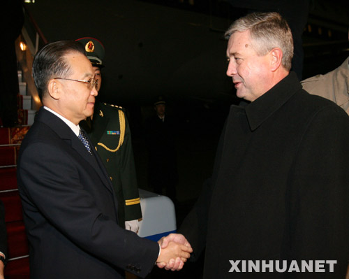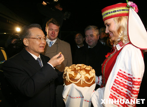 當地時間晚6時45分,溫家寶的專機降落在明斯克國際機場。白俄羅斯代總理謝馬什科、外長馬丁諾夫、白俄羅斯駐華大使托濟克等,中國駐白俄羅斯大使吳虹濱等使館工作人員到機場迎接。當地中資機構、留學生代表也到機場歡迎。