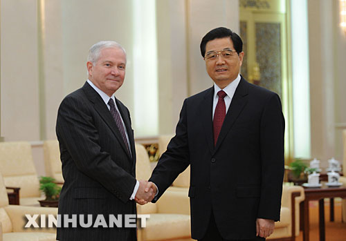 11月6日,國家主席、中央軍委主席胡錦濤在北京人民大會堂會見美國國防部長蓋茨。 新華社記者李學仁攝