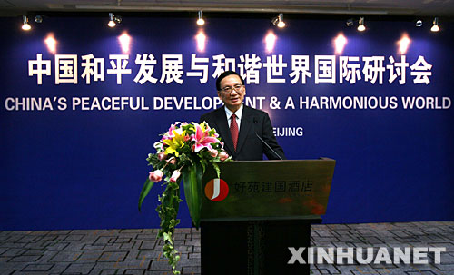 11月8日,國務(wù)委員唐家璇在京出席“中國和平發(fā)展與和諧世界”國際研討會開幕式并講話
