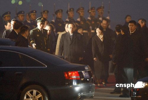 一襲黑色大衣的福田與夫人貴代子一起緩步走下舷梯。中國外交部副部長武大偉和駐日大使崔天凱在舷梯旁迎接福田,與他握手寒暄。