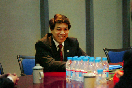 2008年3月11日中國(guó)氣象局局長(zhǎng)鄭國(guó)光做客中國(guó)日?qǐng)?bào)網(wǎng)站,圖為鄭國(guó)光在會(huì)客室。