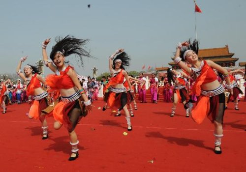 圖文-天安門廣場(chǎng)火炬接力啟動(dòng)儀式 舞蹈熱情奔放