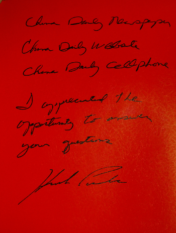 美國財政部長保爾森向《中國日報》、中國日報網和中國日報手機報讀者問候