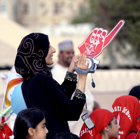 圖文-圣火傳遞活動在馬斯喀特舉行 觀眾裝備齊全