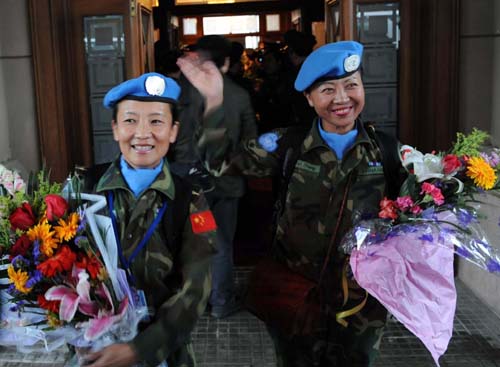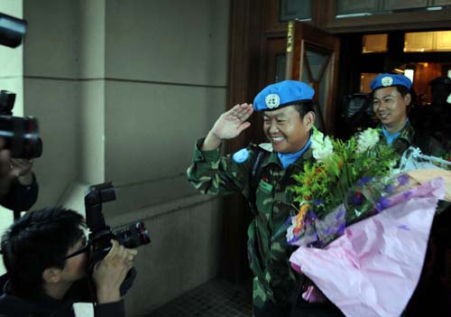 4月20日,兩名赴利比里亞執行維和任務的醫療分隊隊員回到祖國。當日,中國赴利比里亞第6批維和部隊官兵圓滿完成維和任務,回到北京。中國第6批維和部隊是由北京軍區某集團軍工兵分隊、某集團軍運輸分隊、254醫院醫療分隊組成,共558人。當日先期回國的是其中的近300名隊員。