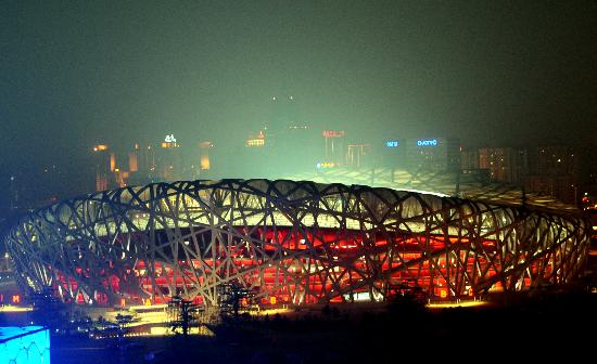 4月17日晚上拍攝的“鳥巢”。“好運北京”國際田聯(lián)競走挑戰(zhàn)賽4月18日至19日將在國家體育場(“鳥巢”)舉行,這將是國家體育場舉辦的首次正式比賽。