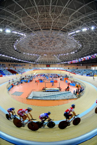 老山自行車館是北京奧運會的改擴建場館。其巨大的“飛碟”形屋頂凌駕于南北貫穿的群芳平臺之上,氣勢恢弘、場面壯觀。老山自行車館擁有國內首例寬達11米的木質賽道,這將使老山自行車館躋身國際一流的室內自行車場館之列。