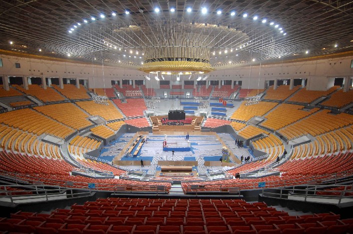 北京工人體育館內景(2007年11月7日拍攝)北京工人體育館是北京奧運會的改擴建場館。改造后,其外觀基本保持原樣,但增加了使用功能。北京工人體育館是我國第一座大跨度圓形懸索結構的多功能綜合體育館。布局合理,視野開闊,是我國五十年代十大建筑之一。