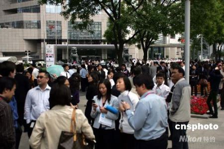 金融街周邊高層寫字樓內人員有序撤出大樓,等待確切消息