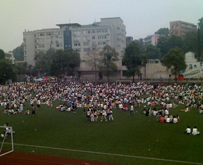 民眾聚集學校操場