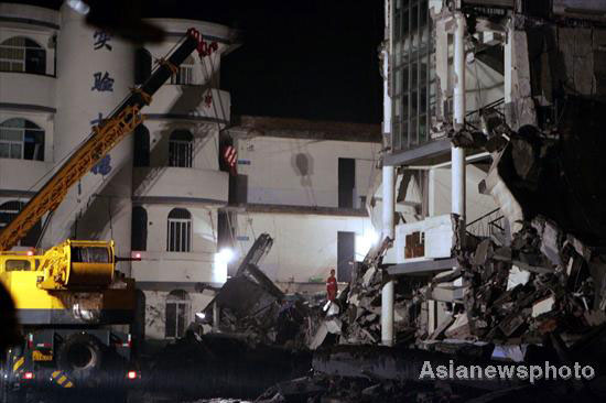 5月12日,受地震影響,四川省都江堰市聚源鎮(zhèn)中學(xué)一幢教學(xué)樓發(fā)生垮塌,截止到當(dāng)日20時,聚源中學(xué)死亡人數(shù)上升至60多人。目前,政府正全力組織救援工作。
