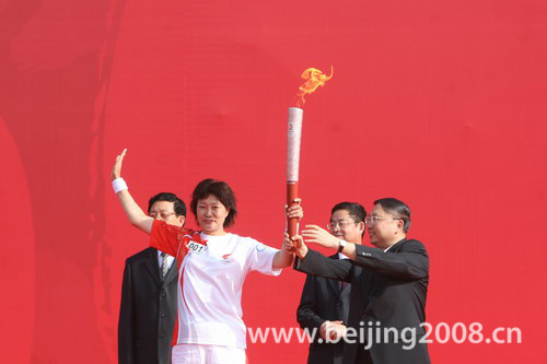 6月25日上午8時12分,隨著首棒火炬手女手奧運健將張衛紅在運城南風廣場起跑,山西火炬傳遞在運城的傳遞正式開始。圖為現場精彩瞬間。(來源:北京奧運官網 編輯:劉一川)