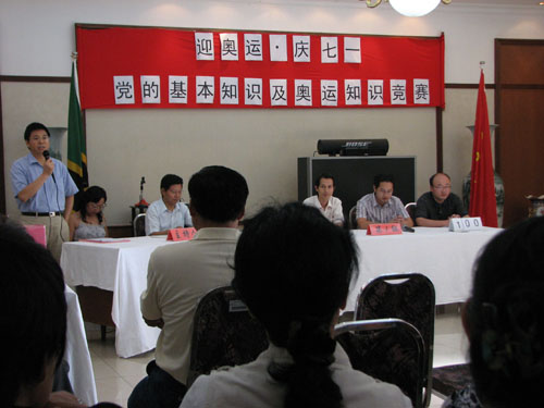 2008年6月30日 中國駐坦使館舉辦奧運知識競答 6月29日,在坦桑尼亞首都達累斯薩拉姆,中國駐坦使館舉辦北京奧運會知識競答活動。達累斯薩拉姆是北京奧運會火炬途徑的唯一非洲國家城市。 新華社記者義高潮攝
