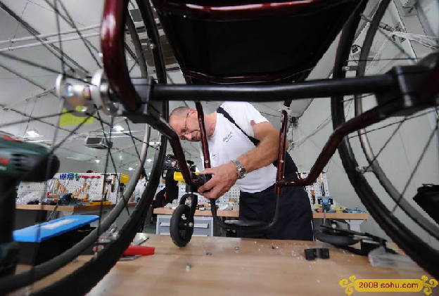 8月30日,殘奧村維修服務中心的工作人員在進行工作。當日,北京殘奧村正式開村。