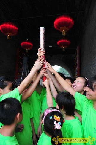 8月28日,殘奧火炬西安站傳遞前夕,一批來自西安市盲啞學(xué)校的孩子們在西安南門城樓下與殘奧會火炬親密接觸。新華社/圖