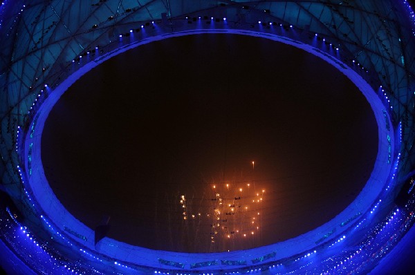 9月6日晚8時,北京2008年殘奧會開幕式在國家體育場“鳥巢”隆重舉行。這是開幕式上的倒計時焰火表演。 新華社記者李尕攝