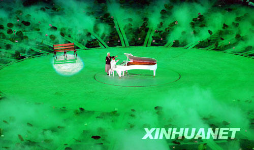 9月6日晚,盲人演員金元輝在殘奧會開幕式上演奏鋼琴。新華社記者張瑞琪攝