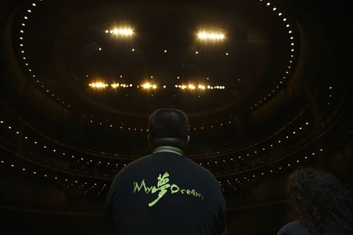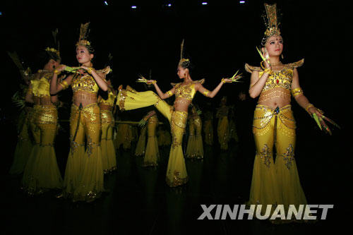 中國殘疾人藝術(shù)團的聾啞人演員在表演《千手觀音》前做最后準(zhǔn)備(4月30日攝)。新華社記者才揚攝