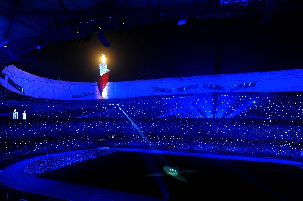 9月17日,北京2008年殘奧會(huì)閉幕式在國家體育場(chǎng)“鳥巢”舉行。圖為主持人在閉幕式前與觀眾互動(dòng)。 新華社記者王小川攝